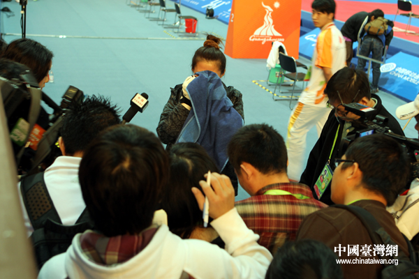 賽后接受媒體采訪時,楊淑君拭淚不斷。(中國臺灣網 鐘寶華 攝)
