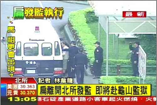 前臺當局領導人陳水扁入監服刑 囚車抵達臺北監獄