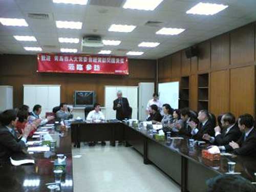 青島市即將承辦2014年世界園藝博覽會(huì),因此由青島市人大常委所組成經(jīng)貿(mào)訪問團(tuán),近期抵達(dá)臺(tái)灣訪問,除前往臺(tái)北花博會(huì)進(jìn)行觀摩與取經(jīng)外,13日則抵達(dá)花的故鄉(xiāng)彰化縣參訪,一行人在拜會(huì)彰化縣議會(huì)時(shí)獲得彰化縣議長謝典霖、國民黨彰化縣黨部主委廖宜田與多位縣議員熱情歡迎。