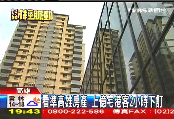 中國臺灣網12月22日消息 據臺灣TVBS電視臺報道,高雄市房地產的發展前景日益被投資商看好,香港投資商近期也蜂擁進高雄買房,在島內引起了轟動。臺灣中介業者表示,有的香港房產公司短暫問詢后便一口氣訂下40座平均每平30萬元(新臺幣,下同)到35萬元的樓盤;1億多元的豪宅,港客看房2小時后便毫不猶豫下訂,“令人驚訝。”