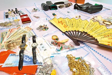 黃金生橫行10年,家中起出金飾、錢幣、名表等贓物。來源:臺灣《中國時報》