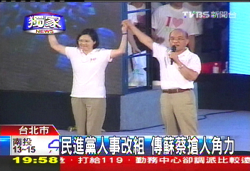 中國臺灣網1月20日消息 據臺灣TVBS電視臺報道,國民黨近日發生人事大地震,民進黨也“跟風”進行人事改組,預計最快下周公布。其中值得一提的是,蔡英文將延攬蘇貞昌派系的前議員黃向群進入民進黨中央。外界對此次“搶人戰”解讀稱,蘇貞昌、蔡英文原本就關系緊張,未來又極可能是2012“大選”初選競爭對手,蔡英文此舉是在示意蘇貞昌她將出馬參選2012,蘇蔡2012出線大戰將正式拉開序幕。