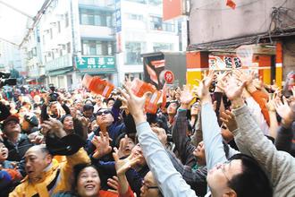 大年初四,臺北市某投注站迎完財神后,撒出總值10萬元新臺幣的五百個紅包,引發民眾爭搶。 來源:臺灣《聯合報》