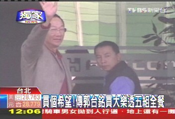 記者連續追問郭臺銘有沒有買彩券,郭臺銘則一抹神秘微笑不予回答。有網友表示,他親眼看到郭臺銘出現在土城中央路的彩券行。記者直接也前往彩券行求證。彩券行老板娘表示,幾乎可以確定就是郭臺銘,當時狀況就是一群人一起過來,好像是員工,他包了5個全餐。