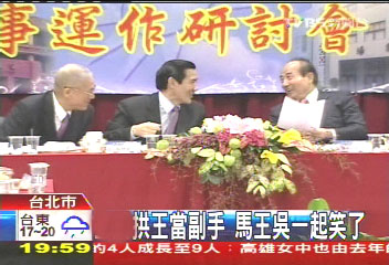中國臺灣網(wǎng)2月21日消息 綜合臺灣媒體報道,國民黨今(21)日下午召開臺“立法行政部門議事運作研討會”,藍營“立委”關切2012“大選”馬英九的副手議題,認為不論“馬吳”或“馬王”配,都應盡速確定。部分“立委”甚至當面直接向馬英九“逼宮”,表示很多藍軍支持者建議由王金平擔任馬英九競選連任的副手;而坐在臺下的馬英九、王金平、吳敦義聽后都尷尬的笑了起來。