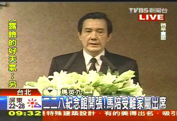在臺(tái)灣二二八紀(jì)念館開(kāi)館的儀式上,馬英九表情肅穆。圖片來(lái)源:臺(tái)灣TVBS電視臺(tái)