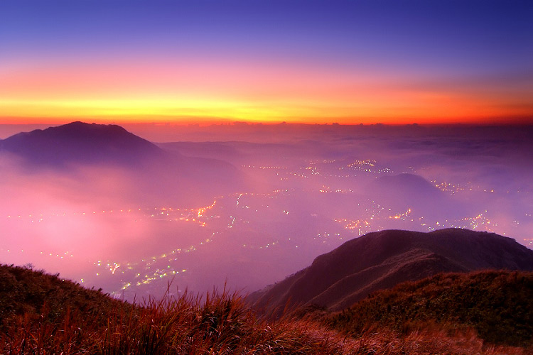 臺北市附近大屯山火山群美麗的晚景。資料圖