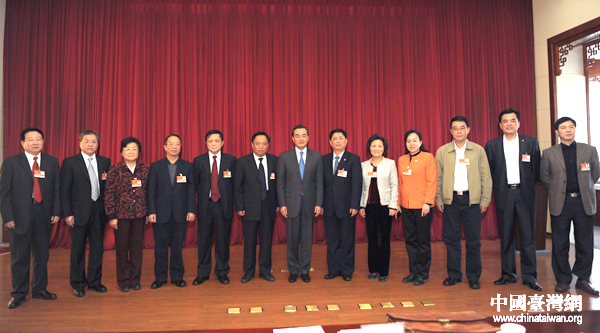 3月8日上午,中共中央臺辦、國務(wù)院臺辦主任王毅應(yīng)邀出席了十一屆全國人大四次會議臺灣代表團(tuán)全體會議,并與代表們合影。(中國臺灣網(wǎng) 王偉 攝)