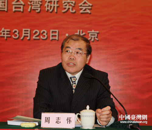 周志懷表示,2008年以來(lái),兩岸關(guān)系發(fā)展實(shí)現(xiàn)了歷史性轉(zhuǎn)折,這個(gè)轉(zhuǎn)折是和島內(nèi)政局的變化密切聯(lián)系在一起的。2008年以后,國(guó)民黨重新執(zhí)政,兩岸在反對(duì)“臺(tái)獨(dú)”和堅(jiān)持“九二共識(shí)”的共同政治基礎(chǔ)上,實(shí)現(xiàn)了前所未有的大合作,兩岸在經(jīng)濟(jì)、文化以及其它各個(gè)領(lǐng)域的廣泛合作,已經(jīng)呈現(xiàn)出諸多成果。同時(shí)周志懷也指出,兩岸合作雖然不斷取得新的重大進(jìn)展,但今后也面臨著新的復(fù)雜因素和很多的問(wèn)題。面對(duì)兩岸發(fā)展的新形勢(shì),如何鞏固既有成果,探討兩岸關(guān)系發(fā)展產(chǎn)生的新問(wèn)題,保持兩岸關(guān)系持續(xù)合作的能量,期待與會(huì)學(xué)者能夠就這些問(wèn)題貢獻(xiàn)出真知灼見(jiàn),為我們兩岸關(guān)系和平發(fā)展的深化作出貢獻(xiàn)。