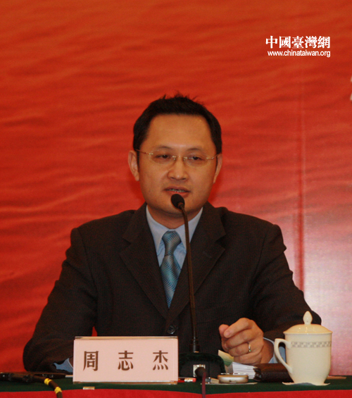 全國(guó)臺(tái)灣研究會(huì)執(zhí)行副會(huì)長(zhǎng)兼秘書(shū)長(zhǎng)周志懷致開(kāi)幕辭。(中國(guó)臺(tái)灣網(wǎng)記者 李杰 攝)