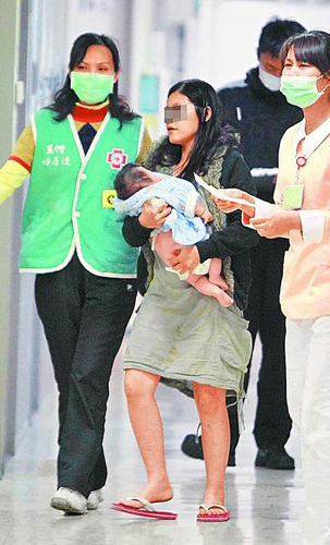 王姓女子緊抱遭毒蟲猛撞衣櫥而受傷的兒子趕赴醫院,尋求救治。圖片來源:臺灣媒體