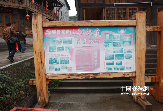 鎮上的宣傳版上公示了08年以來使用中國共產黨特殊黨費支持汶川重建的明細。(中國臺灣網 蕪同 攝)