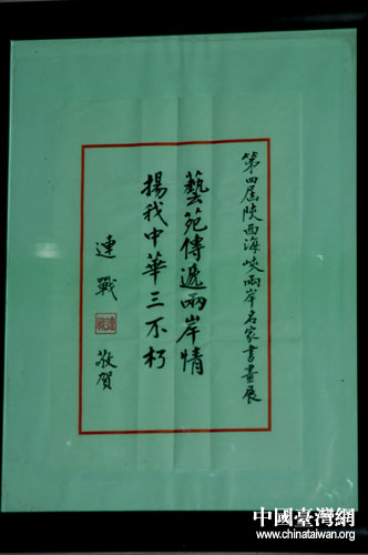 中國國民黨榮譽主席連戰題詞。(陜西臺辦張群莉 攝)