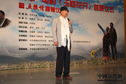 中共青海省委常委、宣傳部長吉狄馬加在首映式上發表講話。(王怡然 攝)
