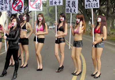 8名辣妹上街舉牌抗議。圖片來源:臺(tái)灣“今日新聞網(wǎng)”