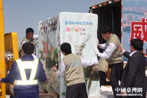 組圖:臺贈大陸長鬃山羊梅花鹿運抵威海歷史瞬間