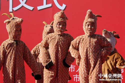 威海市鯨園小學的小朋友在迎接儀式上表演。(中國臺灣網 劉海偉攝)