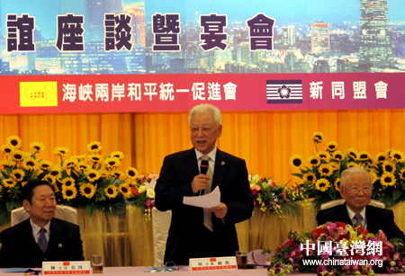 周鐵農在“三團體”(新同盟會、海峽兩岸和平統一促進會、中國統一聯盟)聯合歡迎宴會上致辭(圖片來源:民革中央)