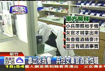 在“漢光演習”期間,臺軍后備司令部一衛生排女軍官疑似酒后亂性,試圖碰觸男性士兵的重要部位,2人一陣沖突之后,女軍官竟然大喊“拿出來給我看”,該士兵甚至還因此受傷。