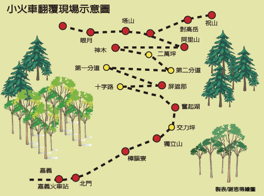 2003年3月1日阿里山櫻花季前夕,一列神木線小火車翻覆,造成17人死亡、173人受傷,是阿里山鐵路通車以來傷亡人數最慘重的一次。