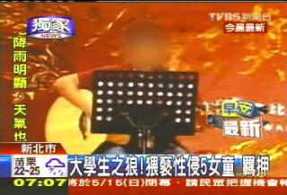 中國臺(tái)灣網(wǎng)5月13日消息 據(jù)臺(tái)灣TVBS電視臺(tái)報(bào)道,日前,臺(tái)灣某科技大學(xué)的李姓大學(xué)生,涉嫌猥褻性侵5名女童被羈押。