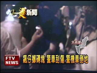 中國(guó)臺(tái)灣網(wǎng)6月7日消息 據(jù)臺(tái)灣媒體報(bào)道,端午假期,高雄飚車族相約出動(dòng)狂飆,警方前往圍捕時(shí),囂張的飆仔竟然拿磚塊丟向警車,一輛警車被砸中,一輛警用摩托車也被沖撞倒地。警方逮捕一對(duì)兄弟檔飆仔,依違反“公共危險(xiǎn)罪”送辦。