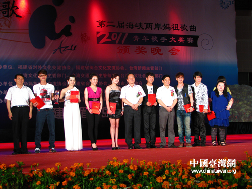 中國臺灣網(wǎng)6月11日莆田消息 6月10日晚,第三屆海峽論壇·媽祖活動周正式拉開序幕,開幕式暨第二屆海峽兩岸媽祖歌曲青年歌手大獎賽頒獎晚會在湄洲島媽祖天后廣場舉行。包括9名臺灣歌手在內(nèi)的30名歌手入圍決賽,包攬各大獎項,一等獎最終由臺灣女歌手周慧珊奪得。