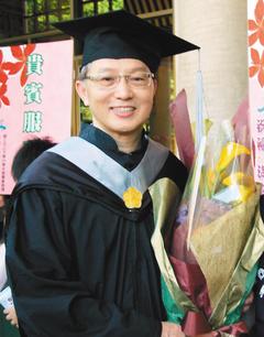 整形名醫曹賜斌遭誤診切除前列腺,圖為曹四年前自臺灣中山大學EMBA碩士班畢業照,當時他已被切除前列腺。圖片來源:臺灣《聯合報》