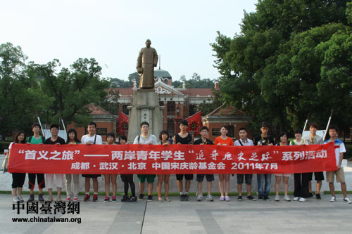 中國臺灣網7月4日武漢消息 7月3日,20名參加“追尋歷史足跡”系列活動——首義之旅的兩岸大學生來到武漢,一同參觀了宋慶齡漢口故居、黃鶴樓、辛亥首義園紀念園廣場、起義門以及武漢老租界、新江灘等地。