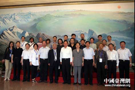協(xié)會(huì)會(huì)長、全國政協(xié)港澳臺(tái)僑委員會(huì)主任陳云林與參展的兩岸藝術(shù)家合影。(中國臺(tái)灣網(wǎng) 劉海偉 攝)