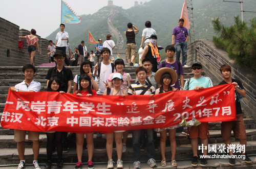 作為中國宋慶齡基金會年度“追尋歷史足跡”系列活動的重要組成部分,兩岸大學(xué)生首義之旅7月2日起在成都拉開帷幕,途徑武漢,最后抵達北京。期間,兩岸學(xué)生在成都參觀辛亥革命紀(jì)念塔、武侯祠,在武漢登黃鶴樓、看宋慶齡漢口故居、觀中山艦博物館,在北京參觀鳥巢、水立方、走進宋慶齡故居、攀登居庸關(guān)長城,一路追尋歷史、重溫首義進取精神,結(jié)下了深厚的友誼。(記者 趙婧)