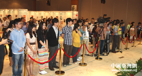 2011年7月20日,“鄉(xiāng)土情 同胞情—2011走進(jìn)臺灣攝影展”在臺灣會館舉行揭幕剪彩儀式。(中國臺灣網(wǎng) 楊永青 攝)