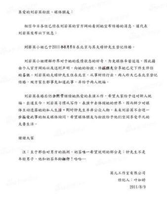 劉若英經紀人發聲明稿,證實劉若英已于昨天(8日)在北京結婚。圖片來自網絡