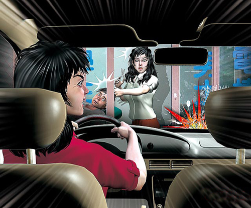 開車撞店示意圖,陳姓婦人懷疑林姓女子是“小三”,開車沖撞美發店店門,讓正在工作的林姓女子嚇一 大跳。圖片來源:臺灣媒體