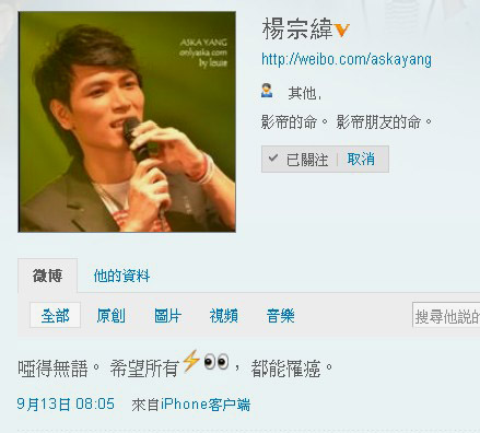 楊宗緯在微博中寫道“希望所有……都能罹癌”。圖片來源:臺灣媒體