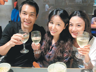 林心如(中)返臺,與好友楊佑寧(左)、洪小鈴吃火鍋慶功。圖片來源:臺灣《聯合報》