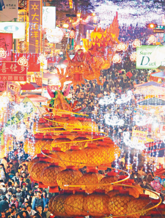 中國臺灣網1月29日消息 據臺灣《聯合報》報道,年假即將結束,但全臺陸續登場的燈會還是延續著濃濃年味。2012年臺灣鹿港燈會在彰化舉辦,以9條金色飛龍串出千里龍廊,上有金龍、下有人龍,金碧輝煌。(中國臺灣網 李迪)
