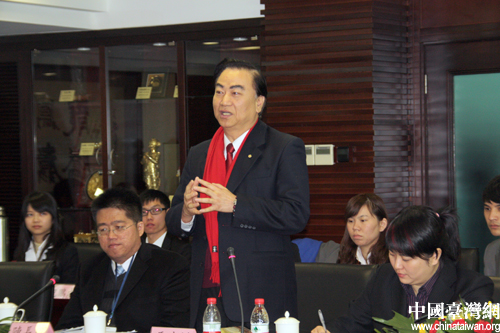 參訪團(tuán)榮譽(yù)團(tuán)長(zhǎng)馮滬祥在會(huì)上發(fā)言。(中國(guó)臺(tái)灣網(wǎng) 芮益芳 攝)