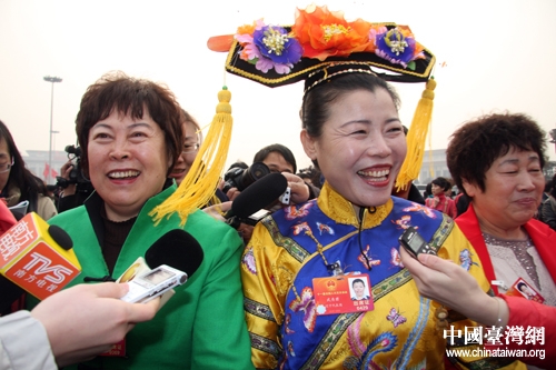 十一屆全國人大五次會議5日上午在北京開幕,來自全國各地的少數(shù)民族代表們身著民族盛裝步入大會堂。(中國臺灣網(wǎng) 王偉 攝)