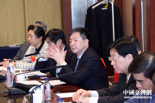 中共中央臺辦、國務院臺辦副主任葉克冬7日上午應邀出席全國政協十一屆五次會議臺盟、臺聯界別聯組討論,聽取委員發言,介紹兩岸關系形勢,并回答了大家提出的問題。(中國臺灣網 于斯文 攝)