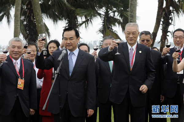 中國臺灣網(wǎng)4月1日博鰲消息 中共中央臺辦、國務(wù)院臺辦主任王毅1日在海南博鰲舉行招待酒會,歡迎前來出席博鰲亞洲論壇的臺灣兩岸共同市場基金會名譽(yù)團(tuán)長吳敦義一行。王毅在招待酒會上即席致辭,以下是致辭全文: