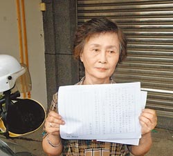 馬英九昨到臺南市探訪外籍修女潘莉安,319槍擊案疑兇陳義雄妻子陳李淑江在場外展示聲明書,要求重啟調查。(圖片來源:臺灣《中國時報》)