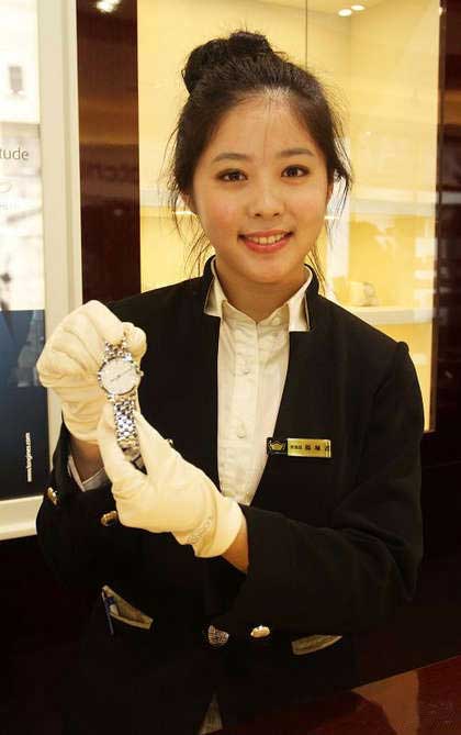 免稅店內銷售名貴精品的銷售員吸睛。圖片來自臺媒