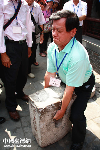 陳益川先生親身體驗“搬石頭”。 (中國臺灣網 劉承思 攝)