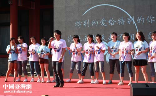 來自中國地質(zhì)大學的周舟和志愿者們共同演唱《特別的愛給特別的你》(中國臺灣網(wǎng) 孟雅詩 攝)