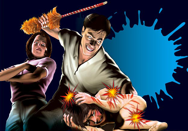 何姓男子不滿女兒尿褲子哭鬧,拿雞毛撣子毒打女兒1個(gè)月,何妻冷血旁觀。(圖片來自臺(tái)媒)