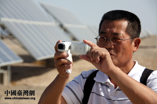 臺灣記者劉朝發在敦煌市太陽能產業園區拍攝。(中國臺灣網 郜利敏 攝)