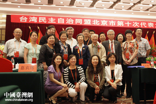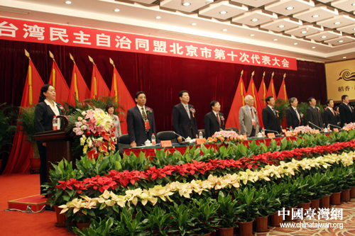 臺灣民主自治同盟北京市第十次代表大會開幕,全體起立奏國歌。(中國臺灣網(wǎng) 楊麗 攝)