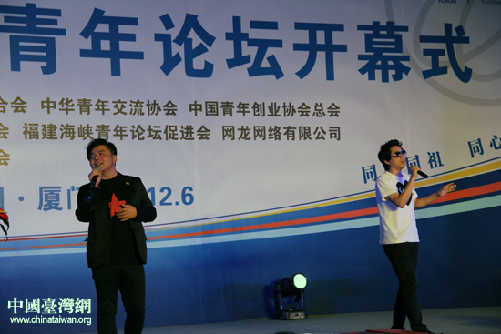 水木年華組合亮相第十屆海峽青年論壇開幕式暨十年紀念活動并深情獻唱。(中國臺灣網 王思羽 攝)