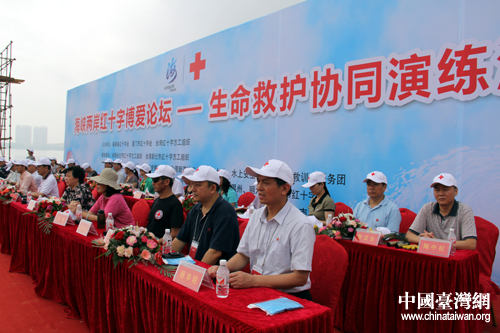 中國臺灣網6月18日廈門消息 6月18日,海峽兩岸紅十字博愛論壇——生命救護協同演練活動在風景秀美的廈門五緣灣海域舉行。中國紅十字會總會副會長王海京、廈門市副市長黃強、臺灣紅十字志工領隊潘文川等出席活動。來自兩岸紅十字組織的六百余名志愿者參與了活動。